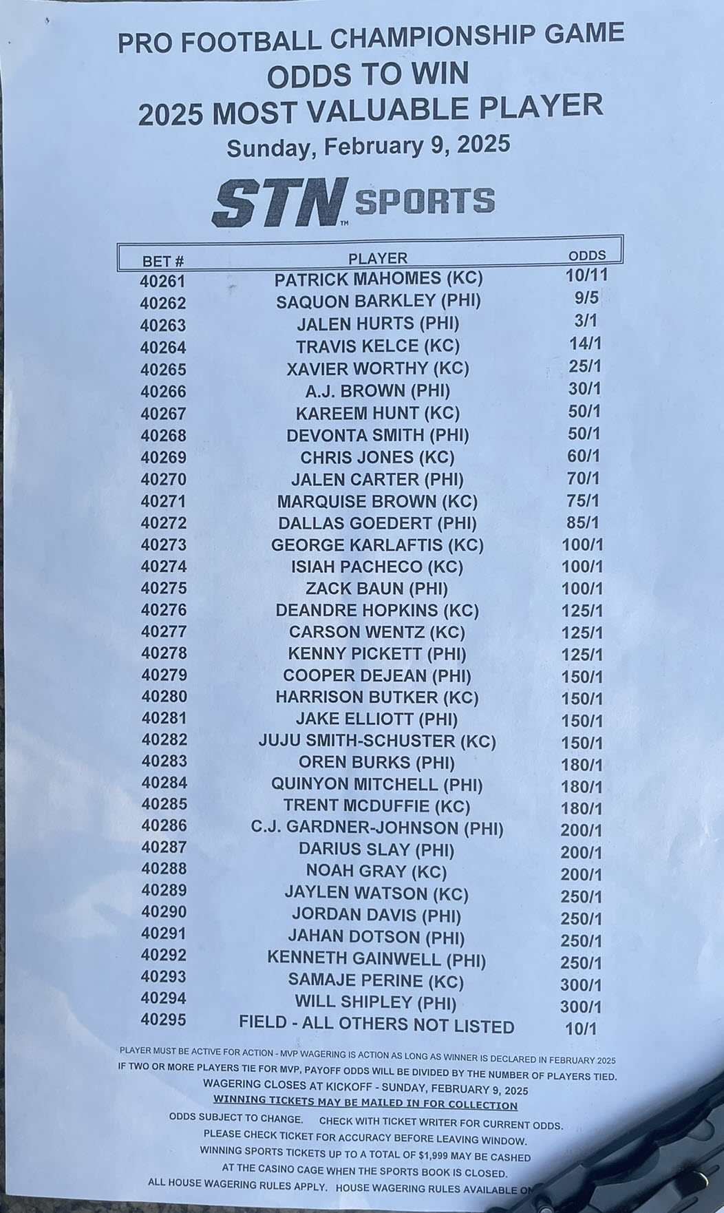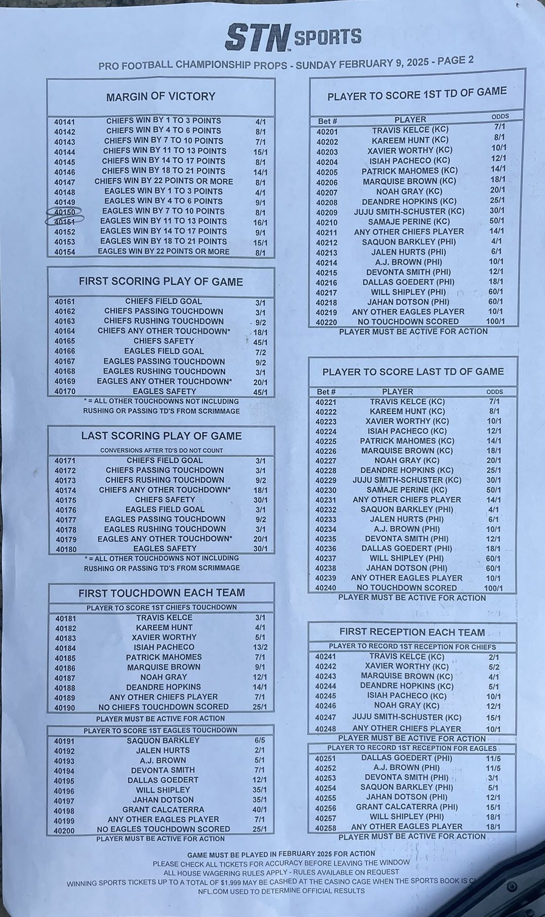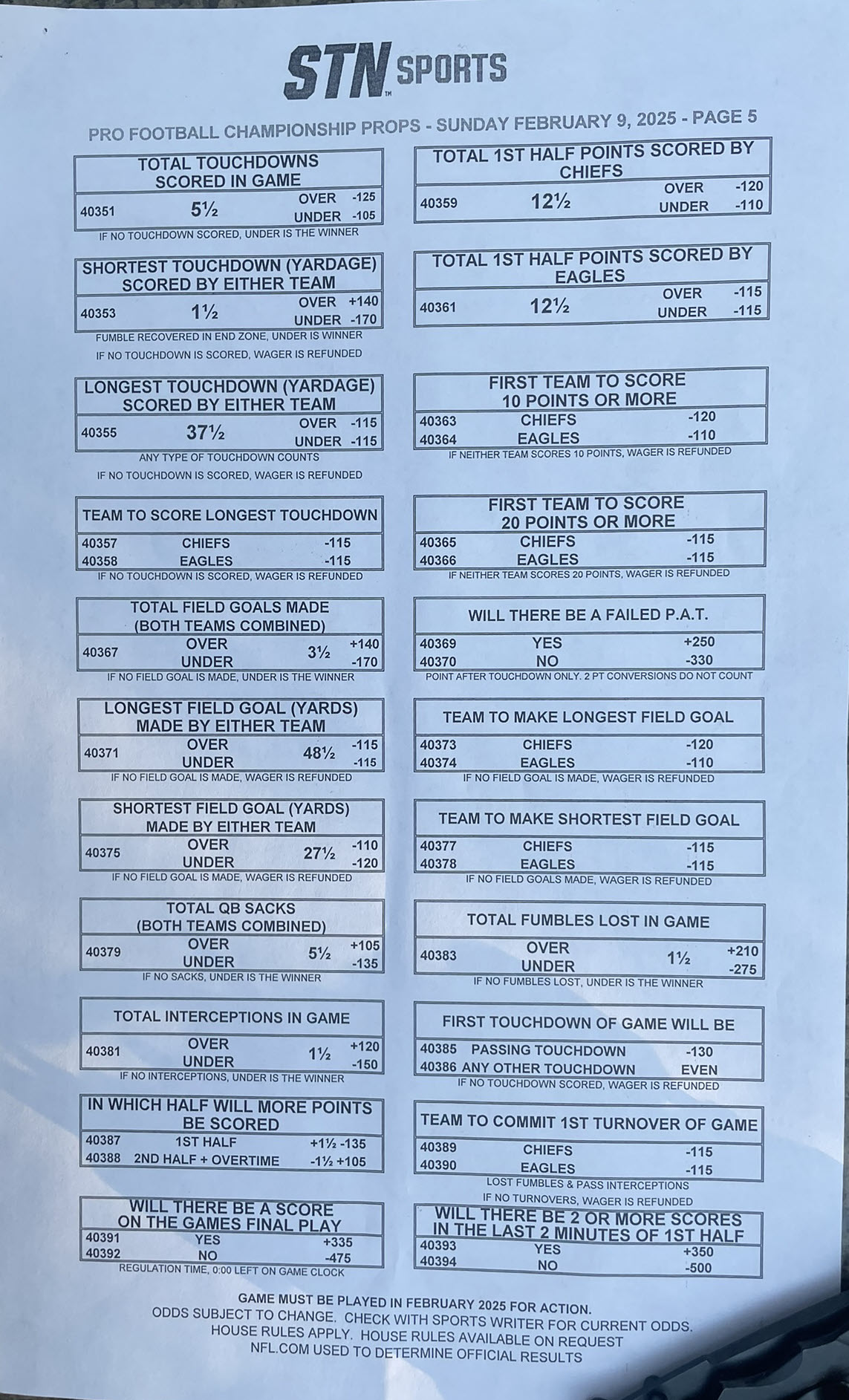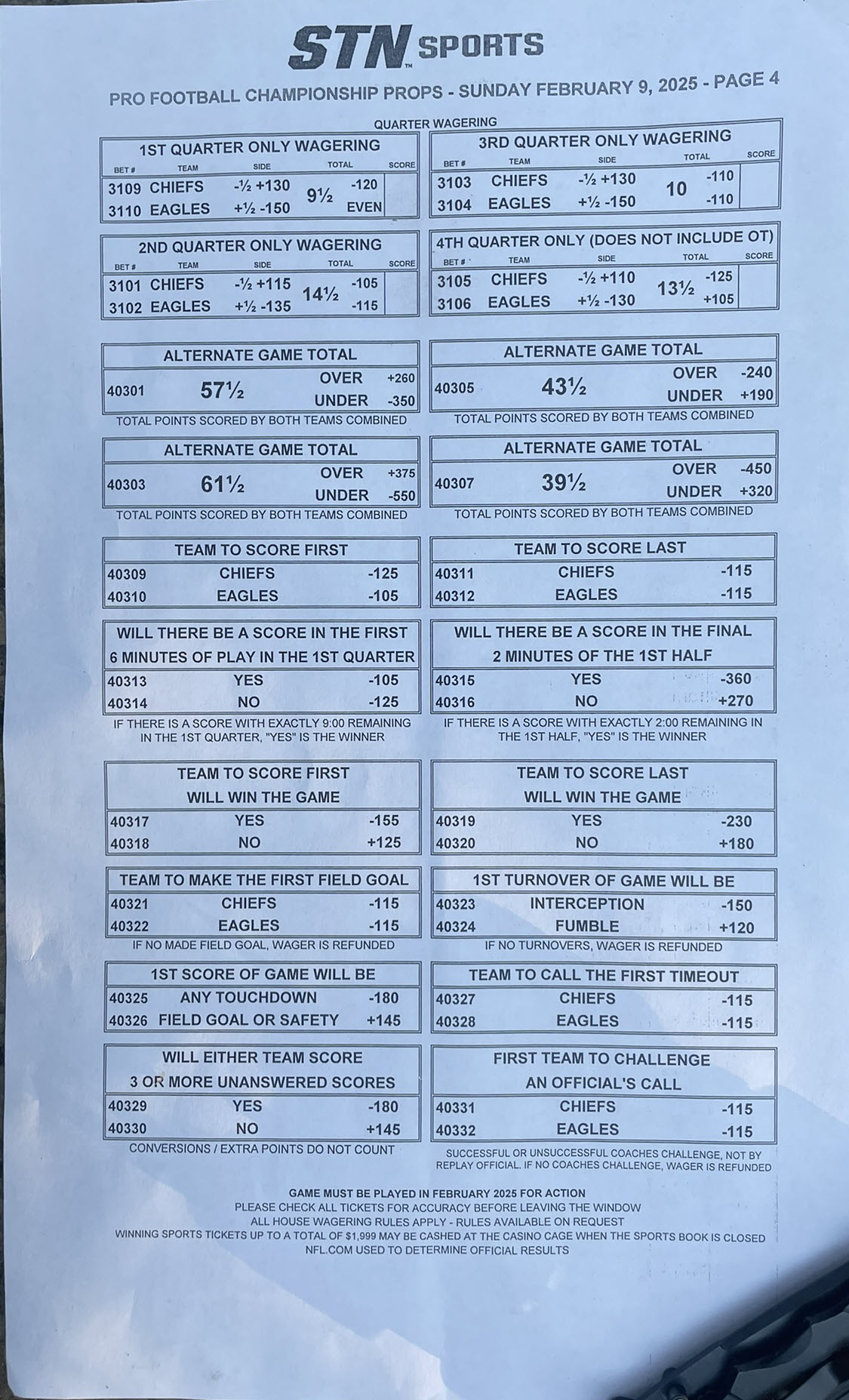 スーパーボウル59 -- ステーションカジノのプロポジションベット