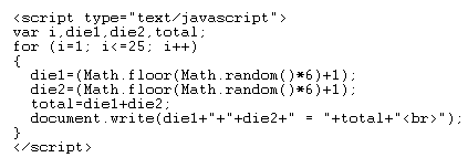 お褒めいただきありがとうございます。そのプログラムはJavaScriptで書かれています。乱数を生成するのは簡単な1行のコマンドです。Math.random() は0から1の間のランダムな小数を返します。こちらは25回のサイコロの目を生成する簡単なプログラムです。このページを更新すると、毎回異なる結果が表示されるはずです。