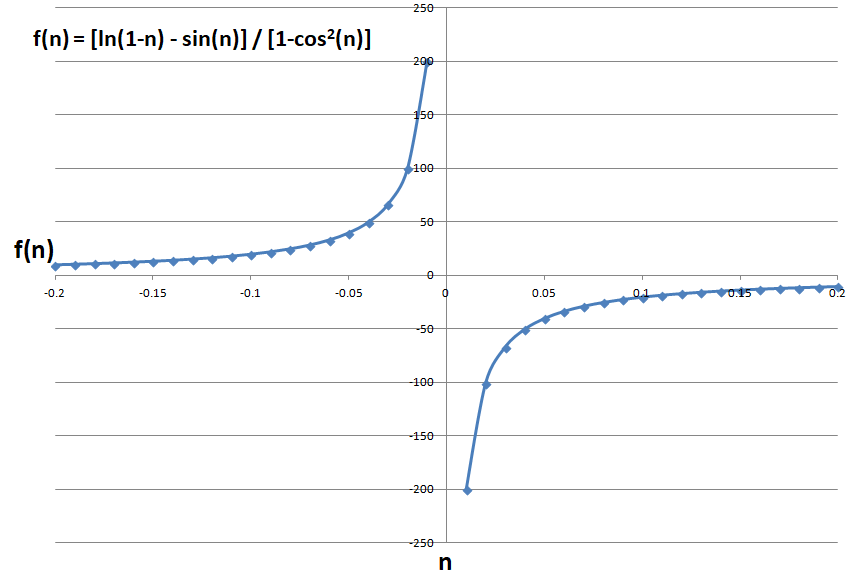 f'(n) = ((ln(1-n) - sin(n)) d/dn = -1/(1-n) - cos(n)