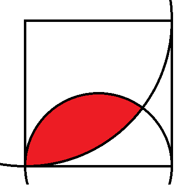 上の正方形の辺の長さは2です。一方の弧は半径1の円で、もう一方の弧は半径2です。赤い領域の面積はいくらですか?答えは三角関数で表すことができます。