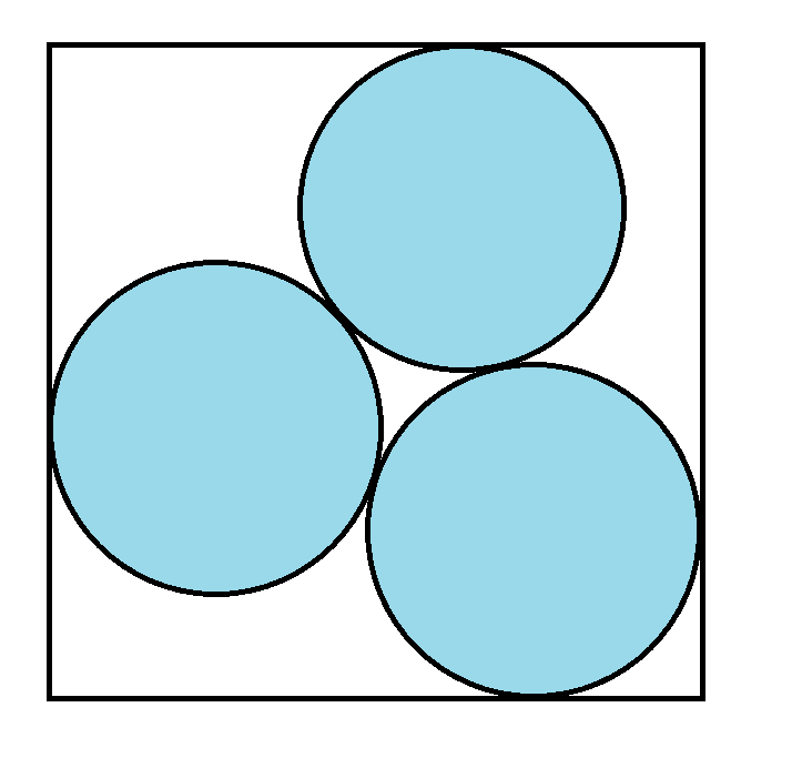 半径1の円が3つ、最小の大きさの正方形に内接しています。正方形の一辺の長さはいくらですか?