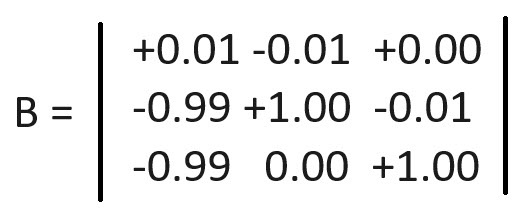これで方程式が3つと未知数が3つになったので、解くことができます。私は行列代数の方が好きです。