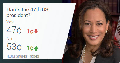 このような状況で賭けのバランスを取るには、Pinnacleでハリスに賭ける1ドルごとに、PredictItでトランプに1.32ドル賭けます。つまり、ハリスに43.1%、トランプに56.9%賭けることになります。