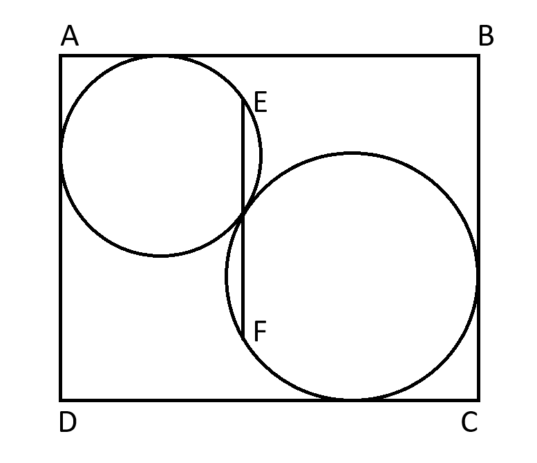 高さ 81 の長方形に 2 つの円が内接しています。長さ 56 の線分が両方の円の端まで伸びており、円が交わる場所を通り、長方形の垂直の端と平行になっています。