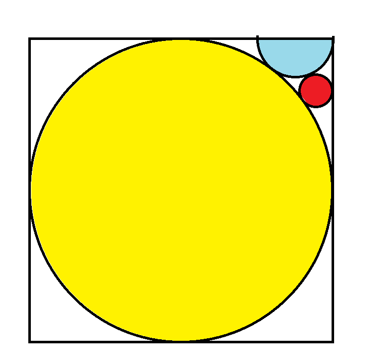 下の画像では、黄色の円の半径は 1 です。赤い円の面積はいくらでしょうか?