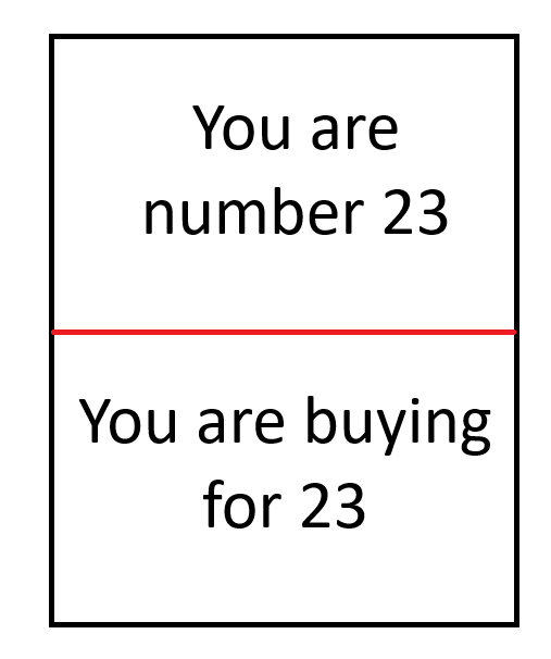 この手順を踏むと、参加者全員が2枚のカードを持ちます。カードには、例えば「あなたは13番です」と「あなたは7番の人のために買います」と書かれています。リストが記入されると、参加者は誰に何を買うべきかは分かりますが、誰が自分のために買うのかは分かりません。