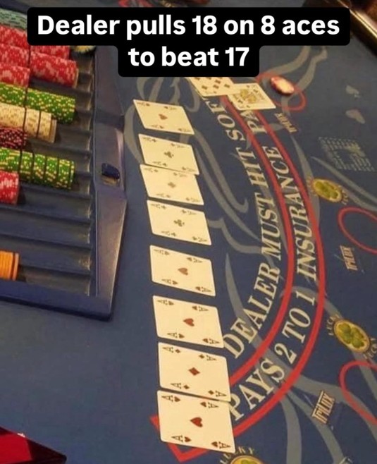 Twitterでこの画像を見ました。ディーラーが自分に8枚のエースを配る確率はどれくらいでしょうか?