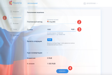 - 提供されている支払い方法のリストから、Piastrix のロゴを見つけて押します。