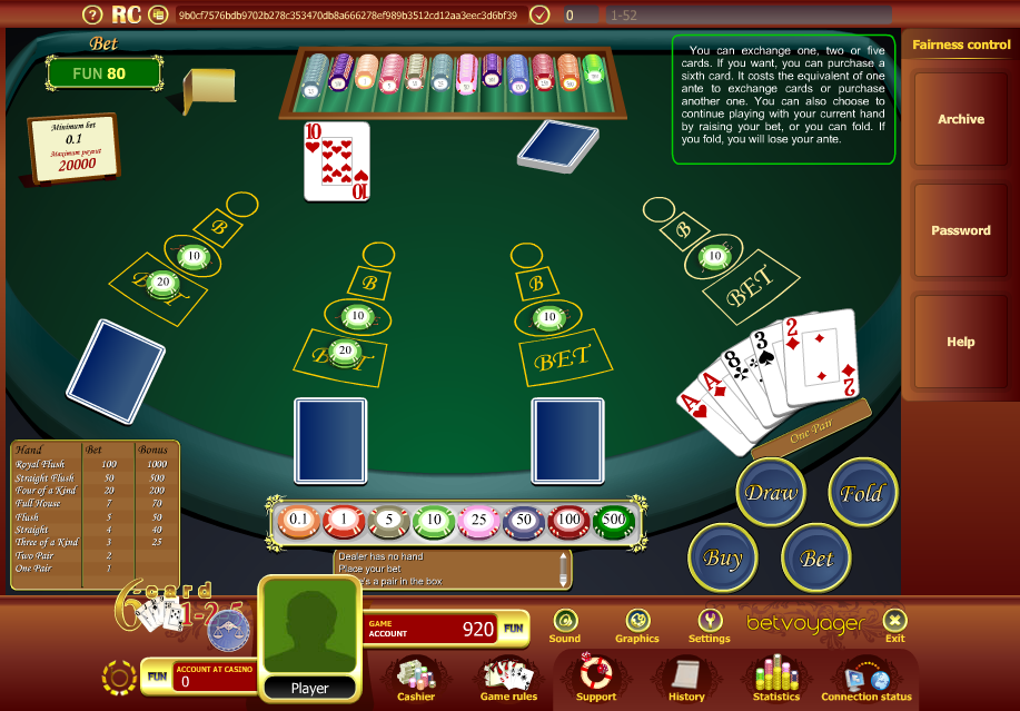 - 交換: プレイヤーはアンティと同額の手数料を支払って、1 枚、2 枚、または 5 枚すべてのカードを交換します。