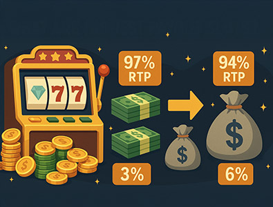 ハウスエッジとは、カジノが長期的に保持する割合のことです。RTPの逆です。つまり、スロットのRTPが97%の場合、ハウスエッジは3%です。RTPが94%の場合、ハウスエッジは6%です。このわずかな差が、長時間プレイ中に残高が減る速さを決定します。RTPが高いほどハウスエッジが低くなるため、これらのスロットはより寛容に感じられ、プレイヤーにとって全体的な価値が高くなります。