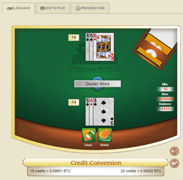 上の画像では、0.00001BTC(ビットコイン)から賭けを始めています。これは約10セントに相当します。プレイヤーはこの賭け金を使って10枚のチップを購入し、その後10枚すべてを賭ける必要があります。なぜこの手順で混乱を招いているのか、私には理解できません。
