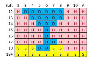 ソフト トータルの場合、プレーヤーは次の基本戦略表に従う必要があります。