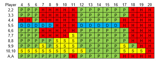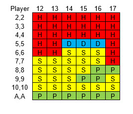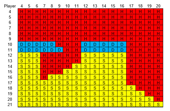 フェイスアップブラックジャックの戦略はかなり複雑です。プレイヤーがハードトータル、ソフトトータル、またはペアを持っている場合と、ディーラーがハードトータルまたはソフトトータルを持っている場合、6つの異なる戦略があります。以下にそれらを紹介します。ディーラーのソフト18~20はハードトータルとして扱うべきです。