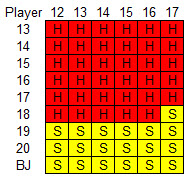 プレイヤーのハード合計とディーラーのソフト合計