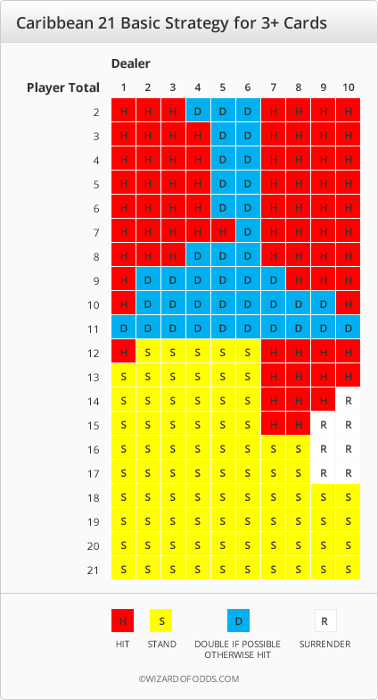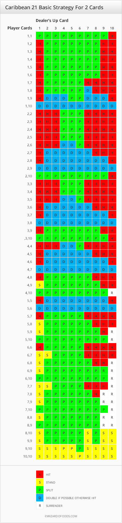 カリビアン21は、 RealTime Gamingインターネットカジノが提供するブラックジャックのバリエーションです。このゲームでは、プレイヤーは最初の2枚のカードをスプリットし、ダブル後にヒットしてリダブルすることができます。もちろん、フリーハンドはなく、タイはすべて負けとなります。ブラックジャックからいくつかのルールが変更されていますので、プレイする前によくお読みください。以下の基本戦略に従えば、このゲームはほとんどのブラックジャックよりもハウスエッジが低くなります。