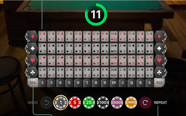 - ゲームは、プレイヤーが標準の52枚のカードのいずれかに賭けることから始まります。プレイヤーは好きなだけカードに賭けることができます。
