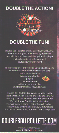 ダブルボールルーレットは、通常のルーレットと同じようにプレイしますが、ボールが2つあります。私が初めてこのゲームを目にしたのは、2013年のグローバル・ゲーミング・エキスポで、その後、2014年2月18日にラスベガスのトロピカーナでプレイしました。トロピカーナでは、ダブルゼロホイールが採用されています。