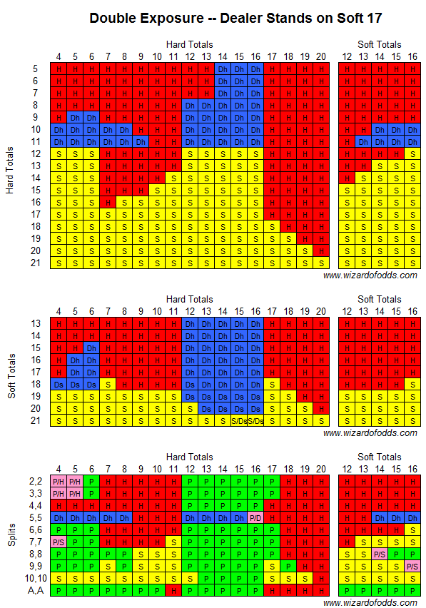 ダブルエクスポージャー付録: ディーラーがソフト 17 をヒットした場合の基本戦略。