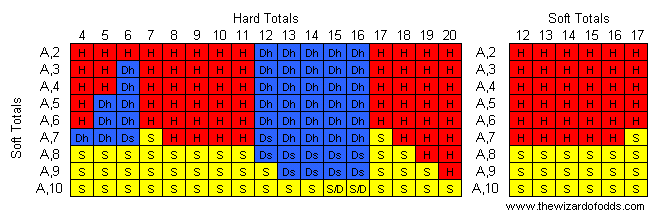 ディーラーがソフト 17 でスタンドする場合の基本戦略を確認するには、ダブル エクスポージャーに関する私のメイン セクションを参照してください。
