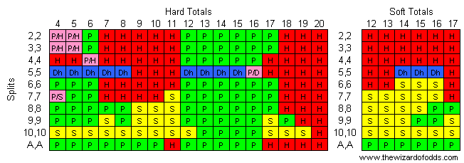 - P/H = スプリット後にダブルが可能な場合はスプリット、そうでない場合はヒット