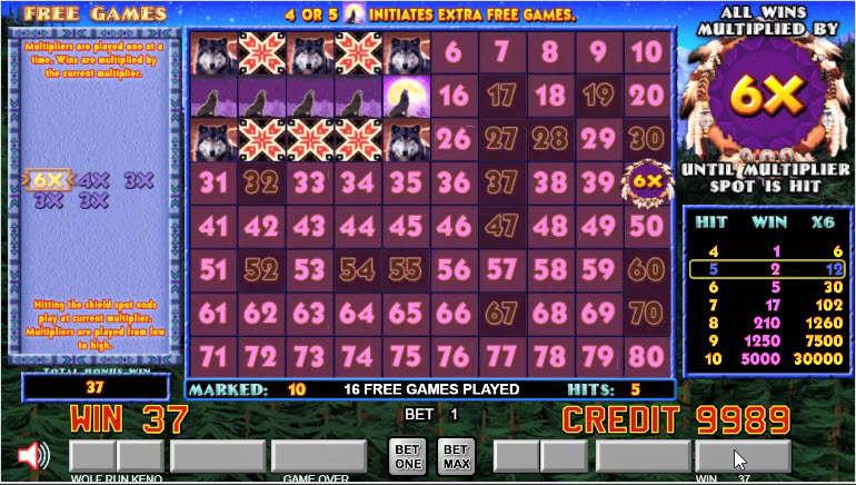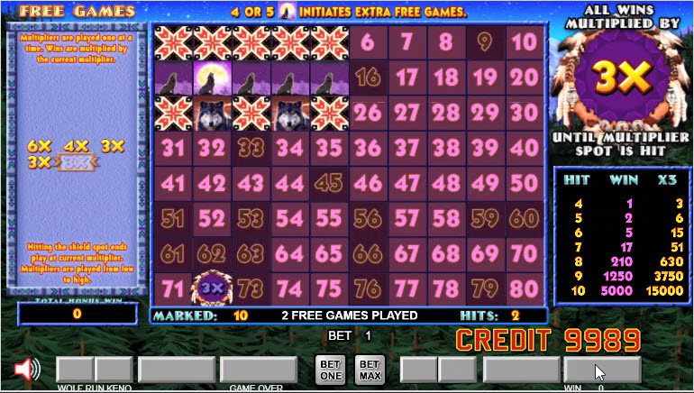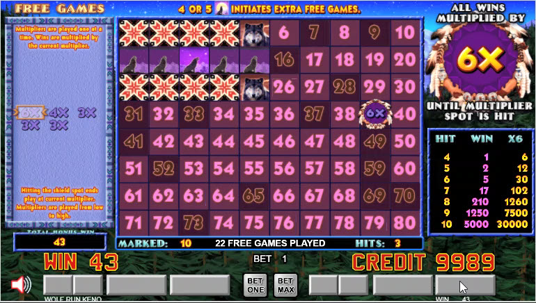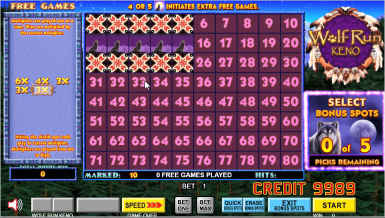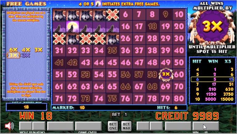 Wolf Run Kenoは、Action Gamingによるキノのバリエーションです。このゲームには、ランダムなマルチプライヤー付きのフリースピンボーナスがあり、複数回のスピンにわたって継続することがあります。