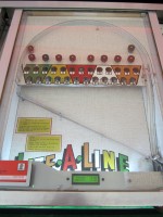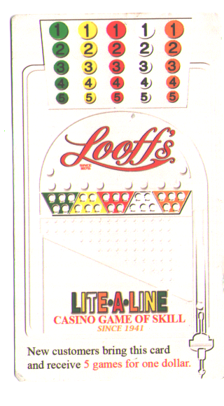 Lite-a-Lineはピンボールとビンゴを組み合わせたゲームです。プランジャーを使ってボード上のボールを発射するところがピンボールに似ていますが、ビンゴのようにボールが5つのスポットを連続して照らせば勝ちとなります。ボールがボード上の25個の穴を通過すると、5×5のスコアカード上の対応するグリッドが点灯します。プレイヤーは通常1ドルを賭け、勝者は15ドルを獲得します。