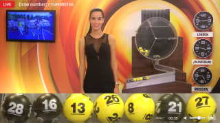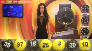 - 5 分ごとに素敵なディーラーが登場し、ボールがいっぱい入った大きなホッパーから 42 個のボールのうち 7 個を引き出します。