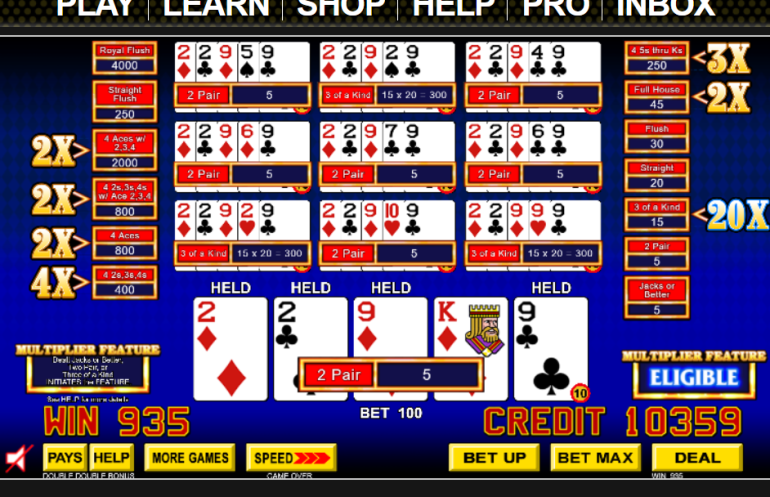 - デュース ワイルド ベースのゲームでは、フルハウス以上に改善すると乗数が付与されます。