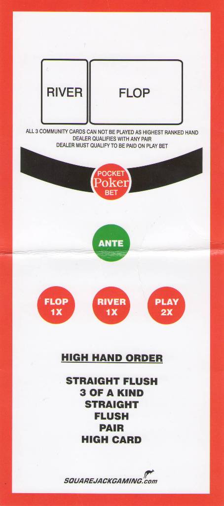 ポケットポーカーは、プレイヤーのポケットカード2枚がペア、ストレート、またはストレートフラッシュの場合に配当が支払われるオプションのサイドベットです。プレイヤーがフォールドした場合でも、ポケットポーカーのベットに勝つ権利はあります。下の表は、ベットの配当表と各勝利ハンドの確率を示しています。右下のセルには、ハウスエッジが2.41%であることを示しています。