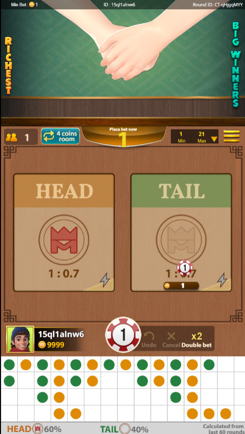 - プレイヤーは表か裏かに賭けることができます。