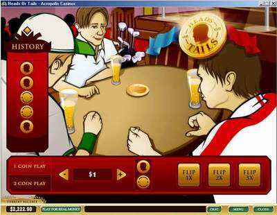プレイヤーは表か裏を選び、1 回、2 回、または 3 回の投げに賭けます。