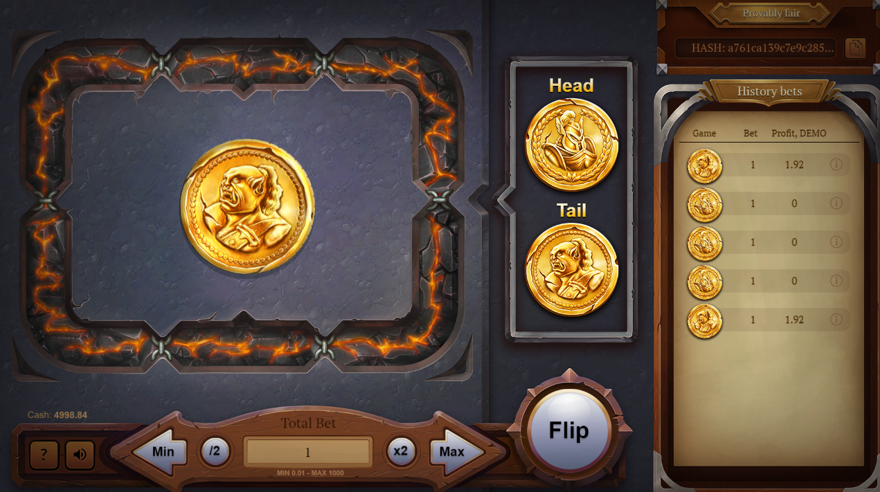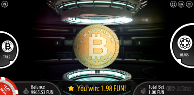 プレイヤーは賭けを行い、コイン(具体的にはビットコイン)の表裏を予想します。勝った場合、100ドルにつき198ドルが支払われます。