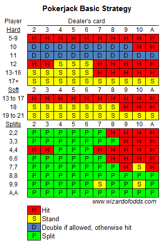 以下は、サイドベットがないと仮定したブラックジャックのルールの基本戦略です。