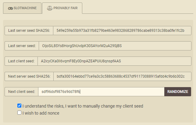 これは、賭けをする前に与えられた次のサーバー シード ハッシュと一致するため、クライアント シードを選択した後、賭けをする前に結果が運命づけられていたと確信できます。