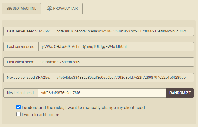 このページでは、暗号化された公正なゲームプロセスに基づく特定のスロットマシンの仕組みについて説明します。結局のところ、すべてのスロットマシンの結果は乱数の抽選に基づいています。暗号化されたゲームの場合、乱数はランダムな文字列に基づいています。