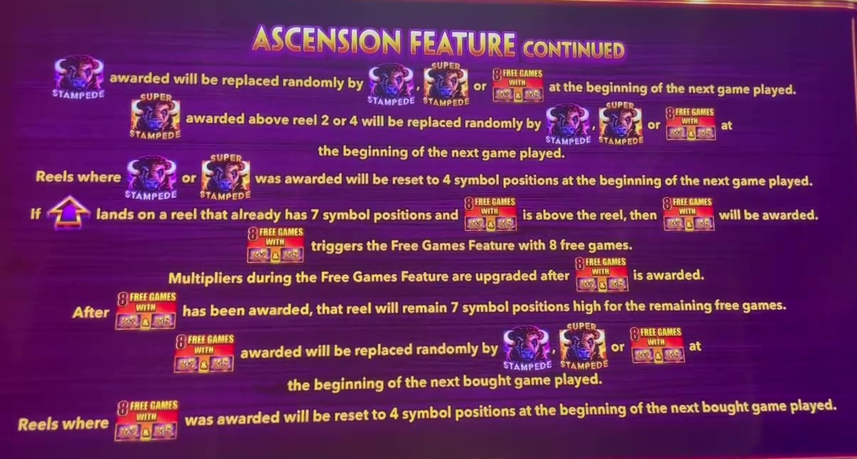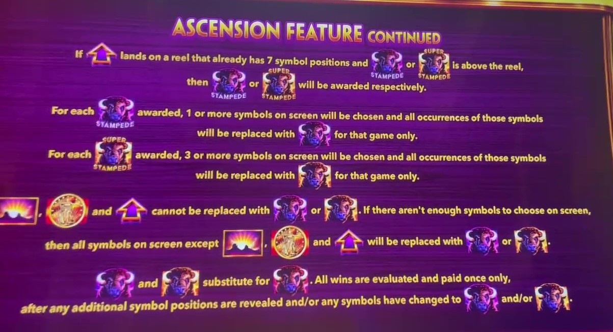 Buffalo Ascensionは、バッファローをテーマにした数あるゲームの一つです。このゲームの特徴は、リール2~4に表示されるシンボルの数が4~7まで変化することです。シンボルのスタック数が多いほど、勝利の可能性が高まり、ボーナス獲得の可能性が高まります。
