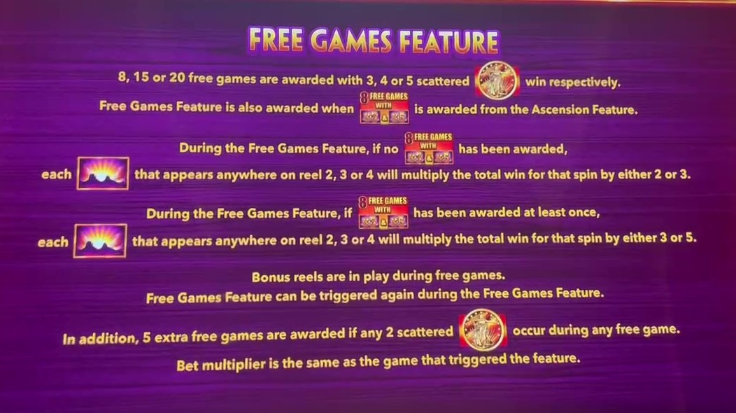 - フリーゲーム機能は、8、15、または 20 のフリーゲームで開始されます。