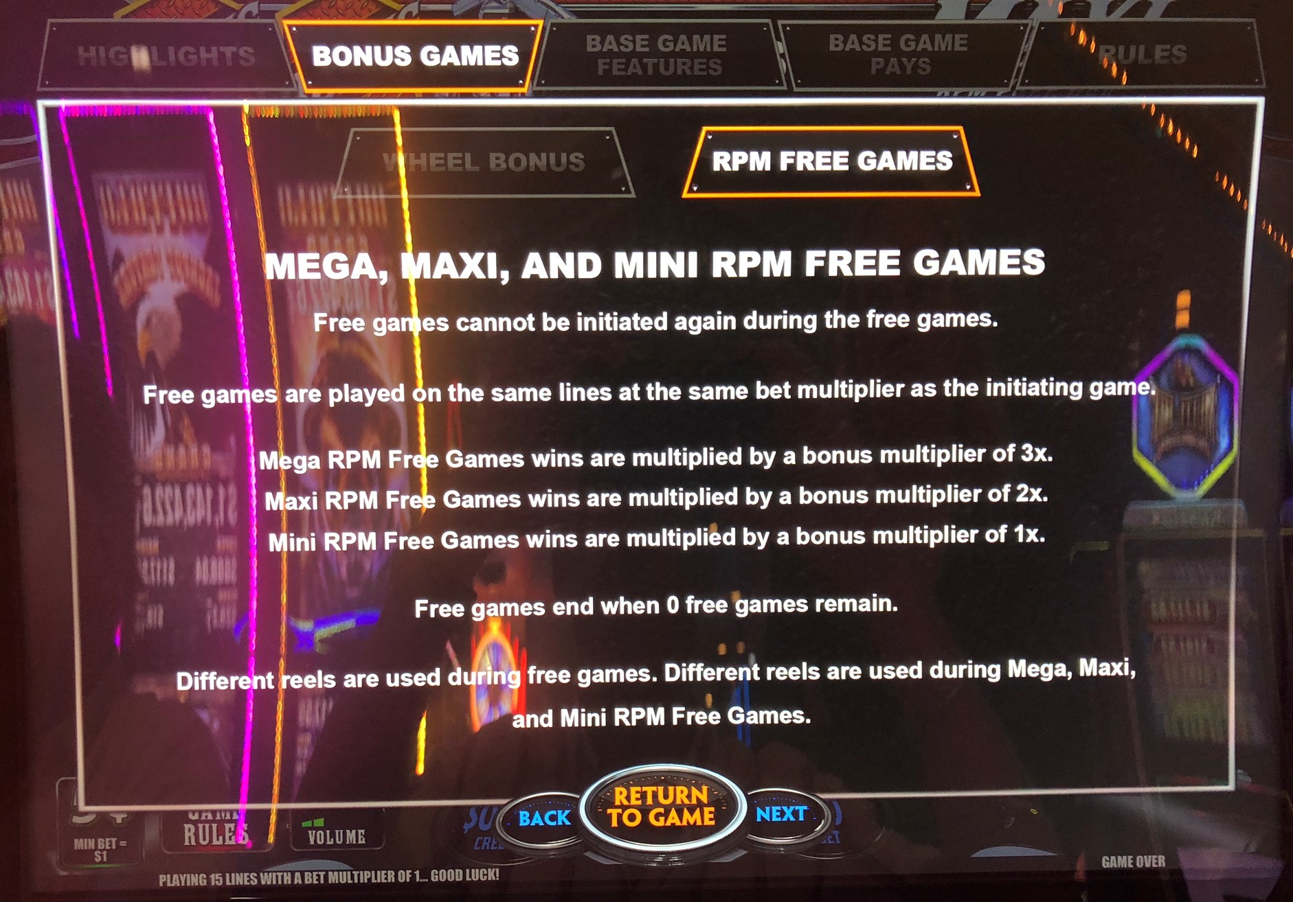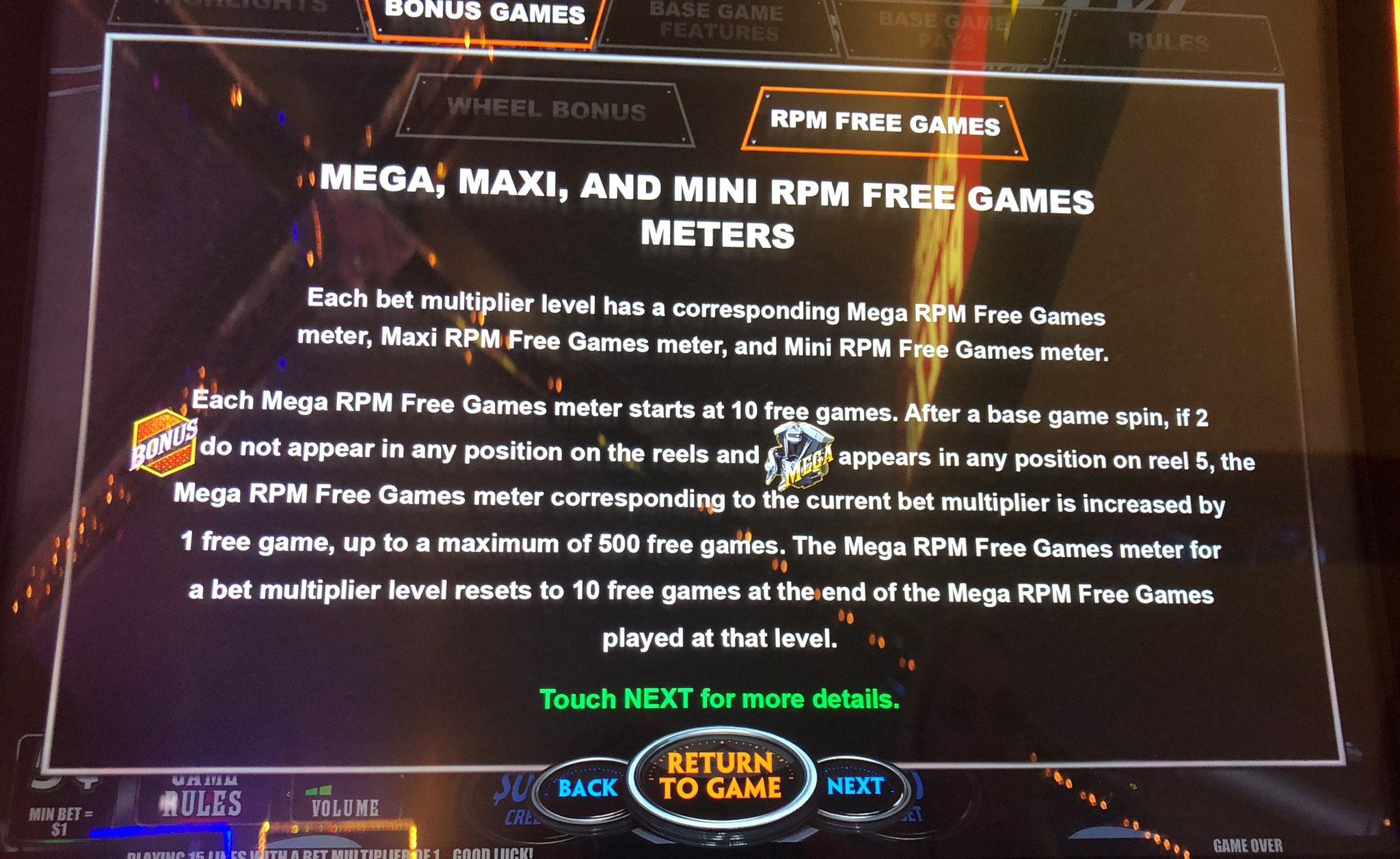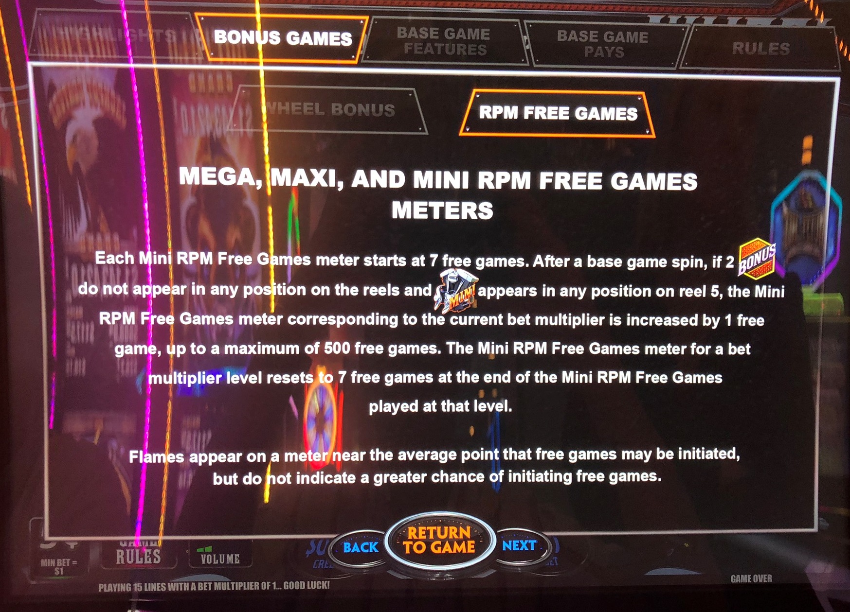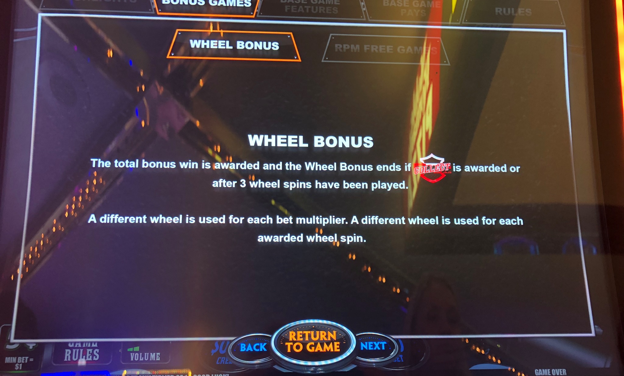 この記事に掲載されているラスベガスのフォー・クイーンズにあるマシンは、ホイールの最大賞金が1万ドルでした。ハーレーダビッドソンの他のマシンの中には、ホイールにプログレッシブ・ジャックポットが搭載されているものもあります。もしそうであれば、ある時点での期待値は、そのプログレッシブ・ジャックポットの関数となるはずです。ジャックポットの額が具体的にどのように影響するかは、残念ながら私には分かりません。