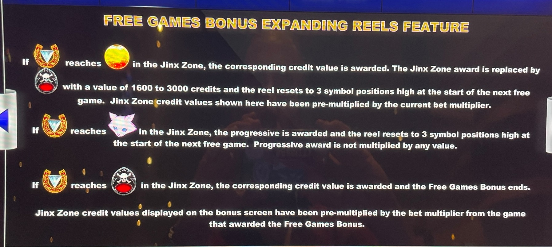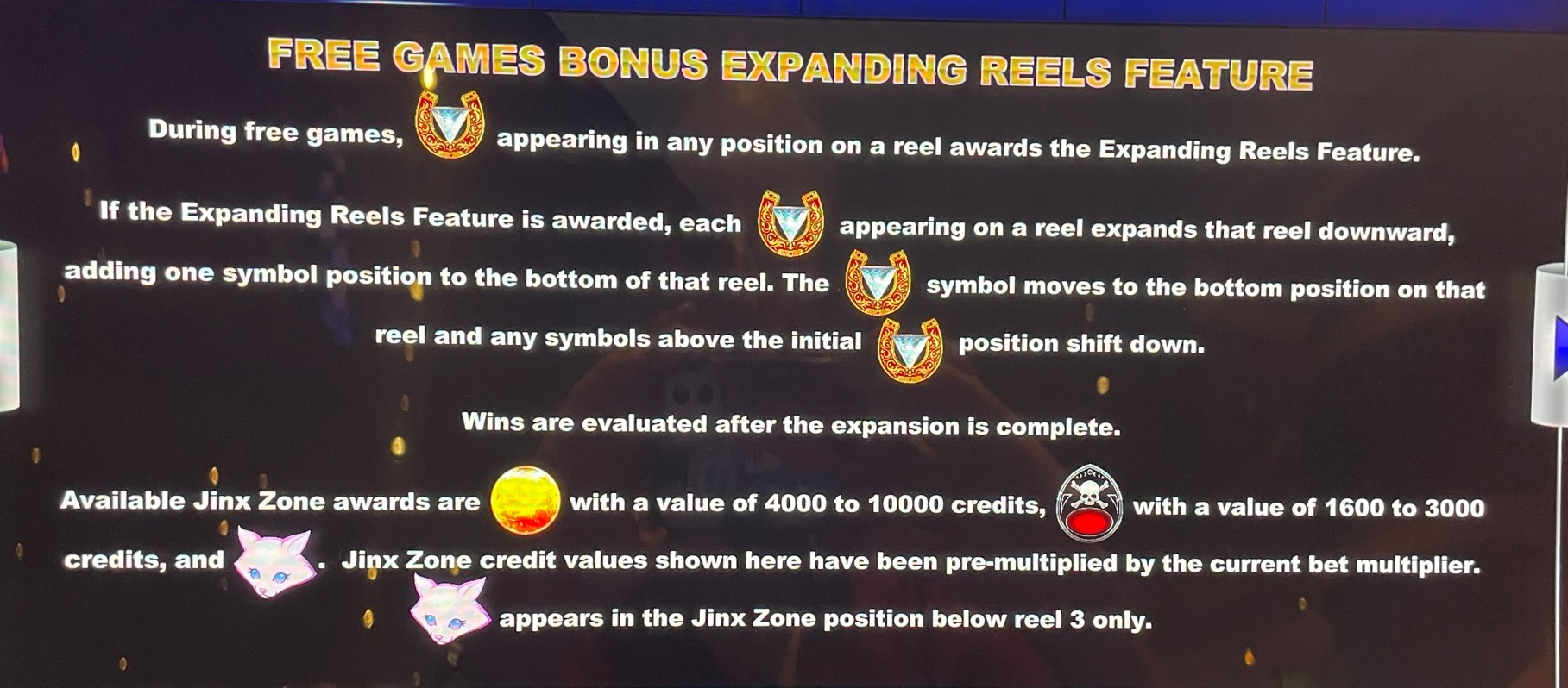 - ボーナス中の画面下部はジンクスゾーンと呼ばれます。ジンクスゾーンの各リールの下部にはシンボルが表示されます。