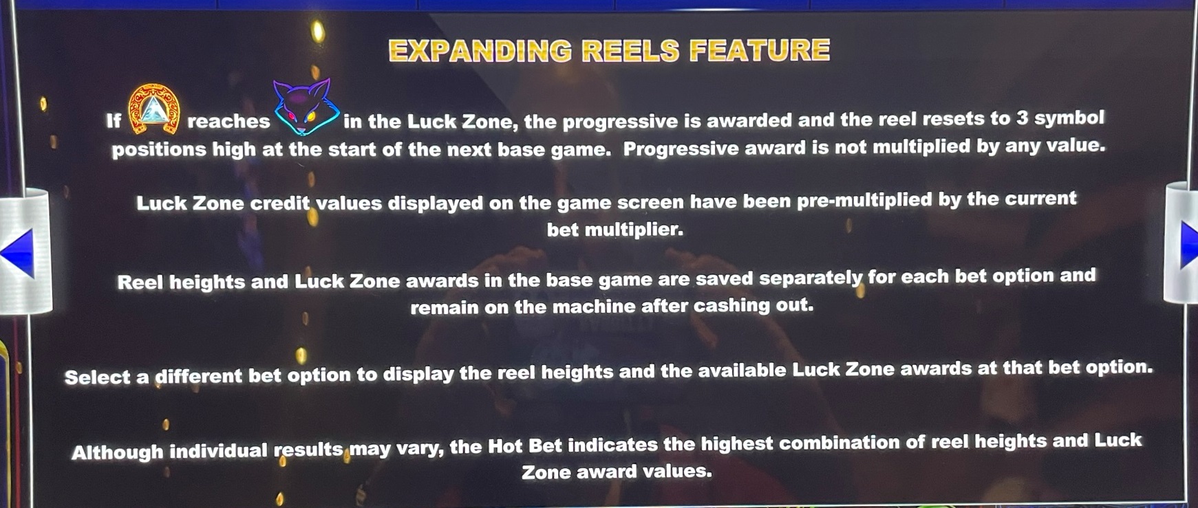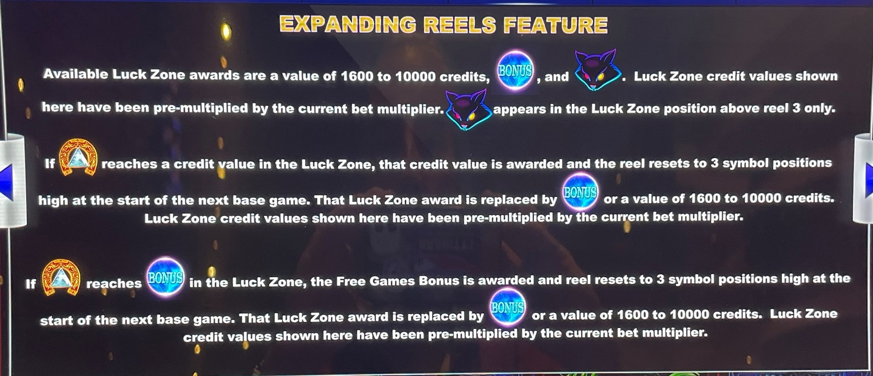 - ラックゾーンは、リールごとに異なる勝利、またはボーナスで構成されています。ラックゾーンのリール3の位置には黒猫のマークが付いており、常にプログレッシブジャックポットを獲得できます。