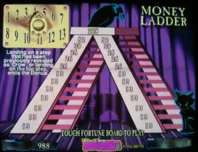 マネーラダーボーナスの確率は(9/67)×(3/67) = 0.006015、つまり166.26分の1です。ゲームの配当への寄与は0.006015 × 18.706941 = 0.112517です。
