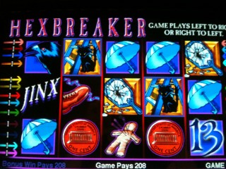 以前分析したゲーム「ジャックポット・パーティー」と同様に、ボーナススピンがなく、ボーナスルールが完全に公開されていたため、ヘックスブレイカーを選びました。唯一の謎はリールの剥離でした。そこで、ラスベガスのダウンタウンにあるメインストリート駅の静かな一角でゲームを見つけ、45分間のプレイを録画しました。これらの動画はYouTubeでご覧いただけます。