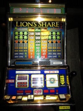 ライオンズシェアは、ラスベガスのMGMグランドにあった3リールのプログレッシブスロットマシンです。マシンの古さとゲーム業界の回転率の高さを考えると、このゲームの歴史を正確に知る人はいないようです。しかし、MGMで最も古いスロットマシンであり、ジャックポットは長年出ていません。今日の基準からすると、機械式リール、ぼやけたグラフィック、そしてキャッシュアウトにはハンドペイが必要ななど、非常に時代遅れのマシンです。