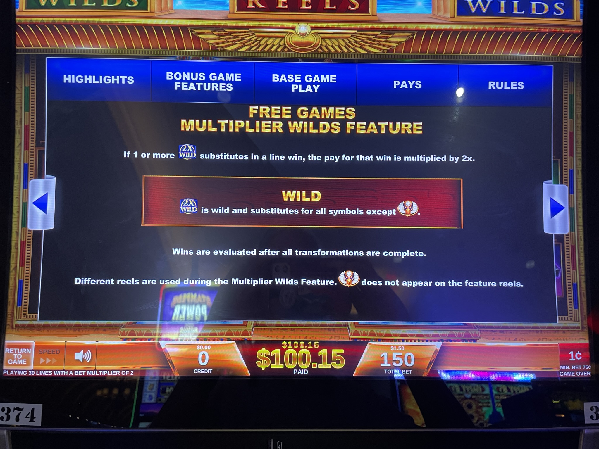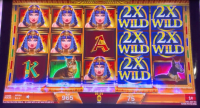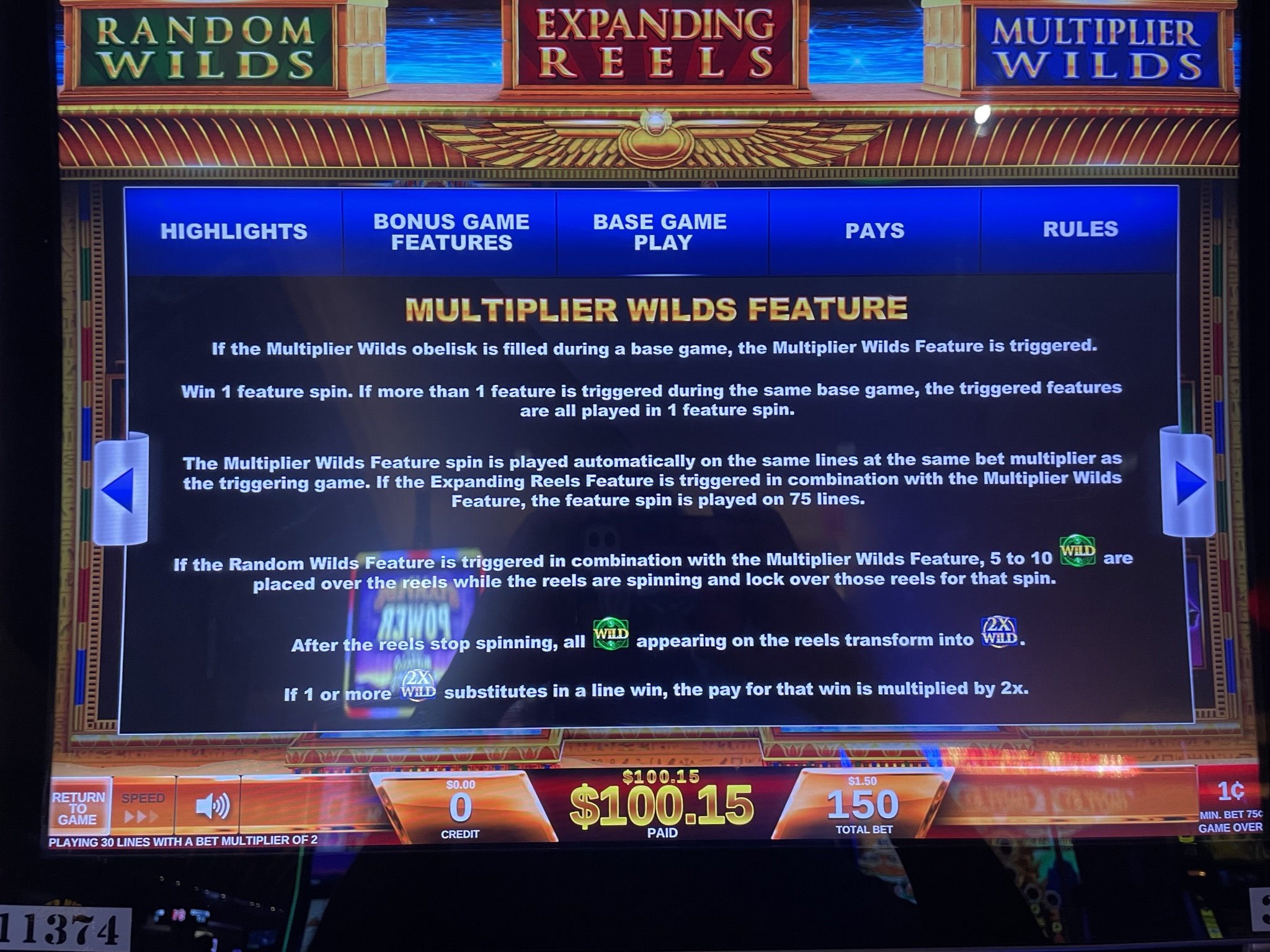 青いオベリスクのピースを3つすべて揃えると、マルチプライヤーワイルドのフィーチャースピンが開始します。このフィーチャースピンでは、すべてのワイルドが2倍ワイルドに変化します。ワイルドが絡む勝利(おそらくほとんどのワイルドが該当します)は2倍になります。ただし、2倍ワイルドを2つ以上揃えても、勝利は2倍になるだけであることにご注意ください。
