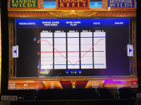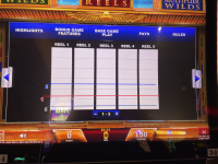 - ベットには75、150、225、375、または600クレジットが必要です。私が見たゲームでは、1クレジットの価値は$0.01でした。つまり、ベット額は$0.75、$1.50、$2.25、$3.75、または$6.00となります。ゲームはどのベット額でも同じ流れで進行します。勝利金はベット額に比例します。例えば、プレイヤーが$6.00をベットした場合、$0.75をベットしたプレイヤーと比べて、同じ勝利金に対して8倍の配当が得られます。