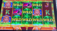 下の例では、ゲームは私に6つのスティッキーワイルドを与えました。リールが停止した後、7つ目のワイルドがリール4の下の位置に停止しました。私の合計賞金は$10.45、つまり最初のスピンで賭けた金額の13.93倍でした。