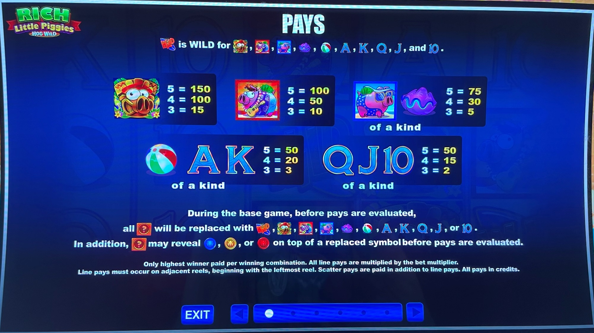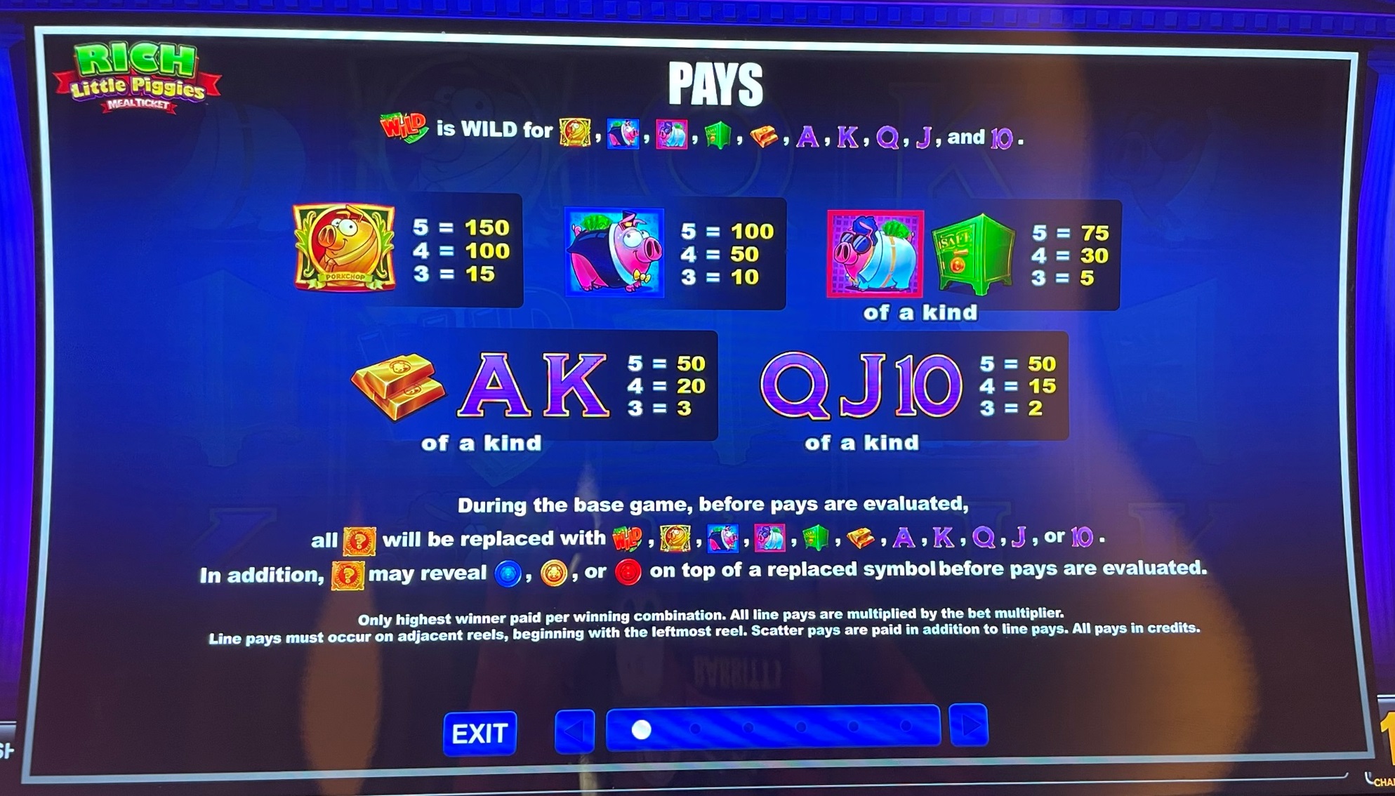 Rich Little Piggiesは、状況によってはプレイヤーに有利な状況をもたらす可能性のある、もう一つの可変ステートスロットマシンです。このゲームのポイントは、プレイヤーがプレイするにつれてコインが手に入ることです。これらのコインは、3つの貯金箱のいずれかに落ちることがあります。落ちると、その色の貯金箱に関連付けられたボーナスゲームに価値が加算されます。また、コインが追加されるにつれて、貯金箱が大きくなっていくのも見られます。コインが貯まると、その貯金箱に関連付けられたボーナスが発動することもあります。豚、特に青い豚が十分に太ると、ゲームはプレイヤーに有利になる可能性があります。このゲームに対する評価は様々ですので、私のアドバイスは鵜呑みにせず、鵜呑みにしないでください。