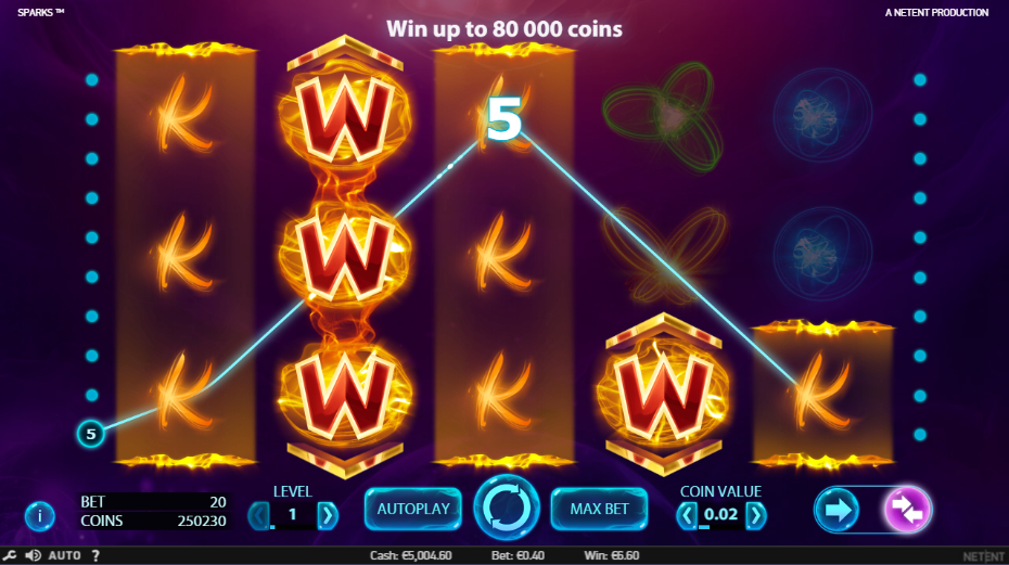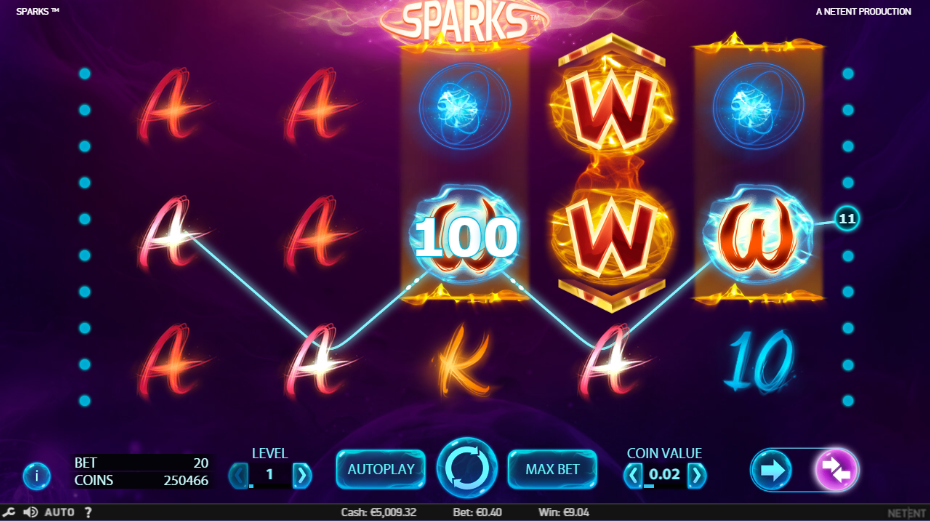 Sparksは、NetEnt社による独創的なひねりを加えたスロットマシンです。一見すると、5つのリールと各リールに3つのポジションを持つ、標準的なビデオスロットのように見えます。Sparksの目新しい点は、拡張ワイルドとクローンワイルドです。