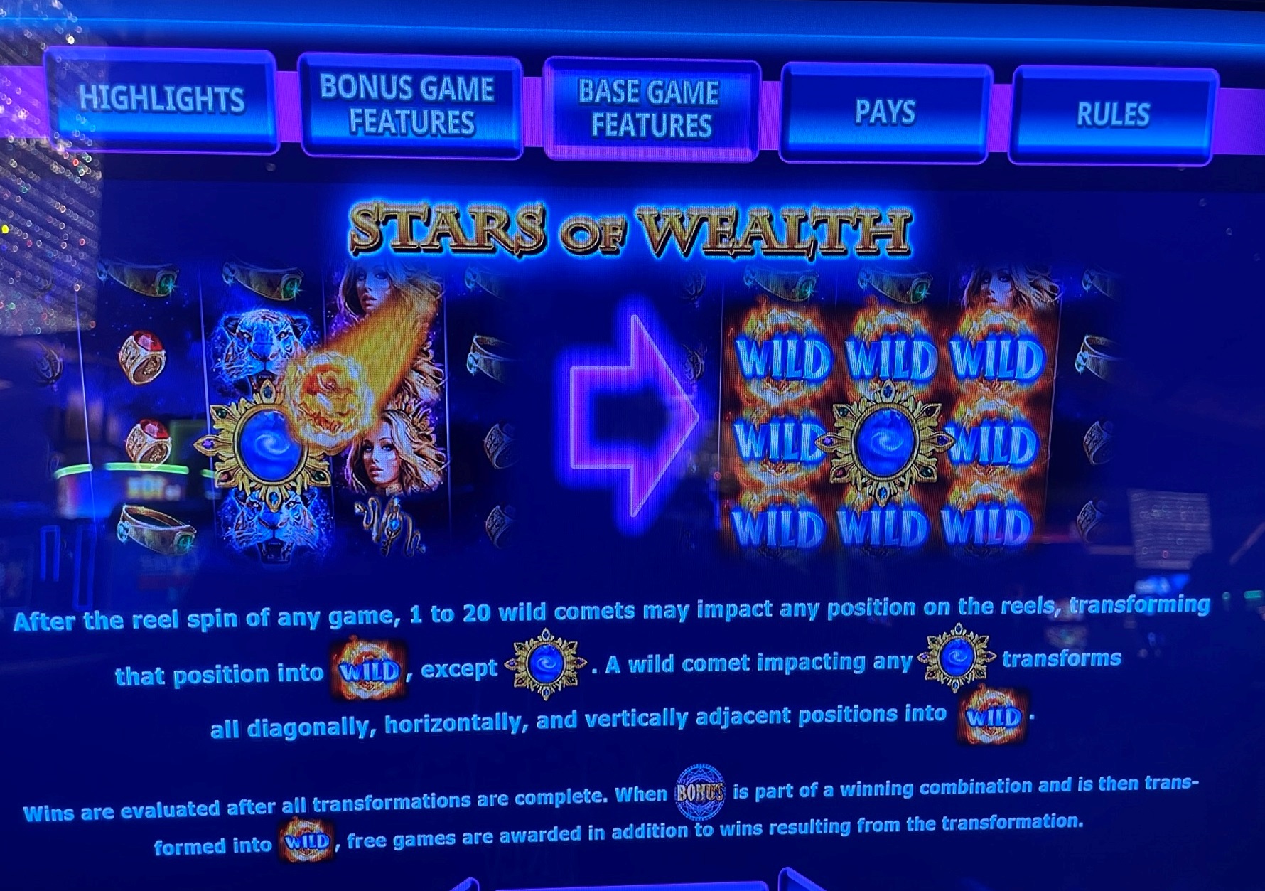 - 時々、空から隕石が落ちてきて、シンボルがワイルドに変化します。この業界では、これを「爆発ワイルド」と呼びます。