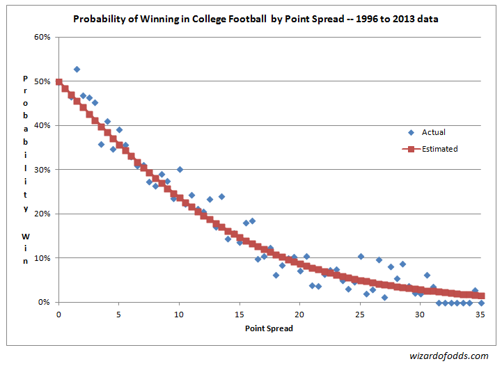 この分析に使用したデータは、1996年から2013年までの大学フットボール12,231試合です。1996年から分析を開始したのは、同点をなくすために延長戦ルールが導入された年だからです。データはかなり乱雑だったため、ポイントスプレッドが-100、オーバー/アンダーラインがマイナス、クォーターごとの得点合計が試合総得点を下回っている、試合が引き分けに終わったなど、不正確な情報を含む多くの試合を除外する必要がありました。もちろん、まだ不正確なデータが含まれていることは間違いありませんが、大部分は問題ないと考えています。